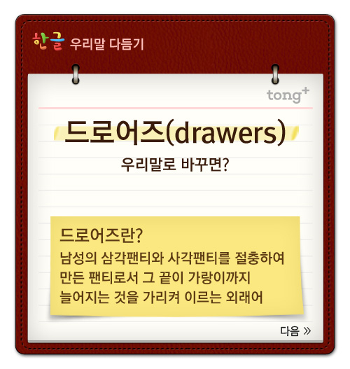 '드로어즈'는 '맵시속바지'
