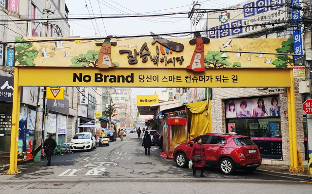 이마트는 12일 인천 남동구에 위치한 장승백이 시장에 12번째 '노브랜드 상생스토어'를 열었다. 상생 스토어는 전통시장과 논의 후 판매하는 품목이 겹치지 않도록 의논해 판매 상품을 정한다. 보통 공산품, 가공식품 위주다.