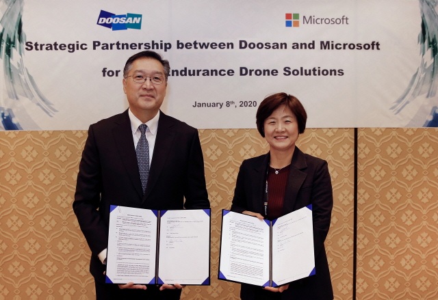 두산모빌리티이노베이션(DMI)은 8일(현지시간), 마이크로소프트(MS)와 ‘수소연료전지 드론 솔루션 개발’을 위한 협약을 체결했다고 밝혔다.