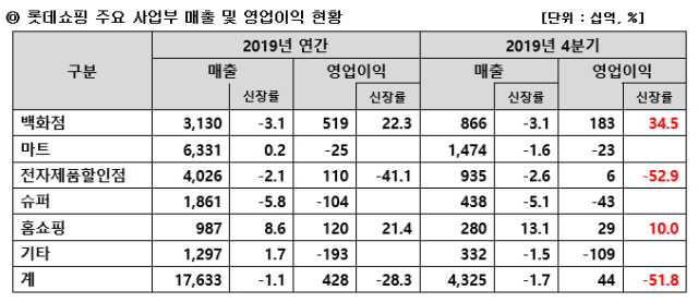 롯데쇼핑, 작년 영업익 4279억…전년비 28.3% 감소