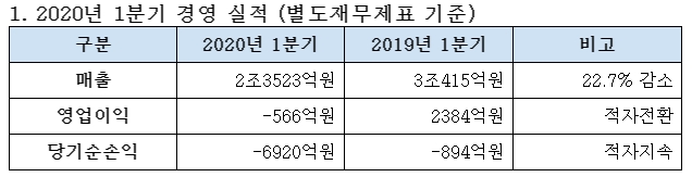 회사는 코로나로 인한 여객 수요 위축으로 매출액은 감소했지만, 유류비·인건비 등 영업비용 축소에 따라 분기 영업손실을 최소화했다고 설명했다. 당기순손실은 환율 상승으로 인한 외화환산차손실 5368억원 발생된 영향이다.