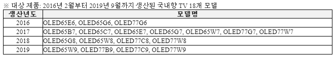 이에 따라 LG전자는 이 부품을 사용해 생산한 18개 모델(약 6만대)을 대상으로 파워보드를 교체하는 서비스를 진행한다.