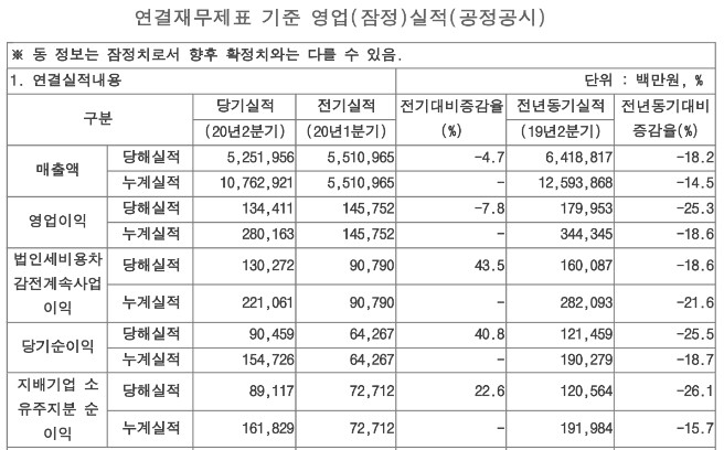 영업익 1344억…매출 5조2520억 18%↓