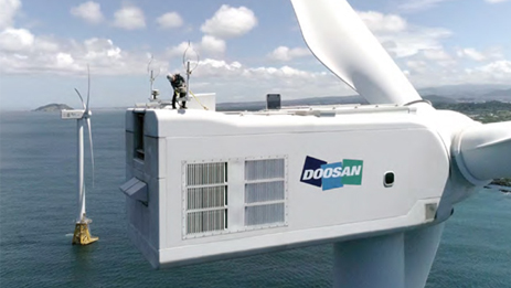 친환경 에너지 사업을 강화하고 있는 두산중공업이 그린수소 실증사업에 참여한다. 풍력발전을 활용한 그린수소 전주기 실증사업은 이번이 국내 처음이다.