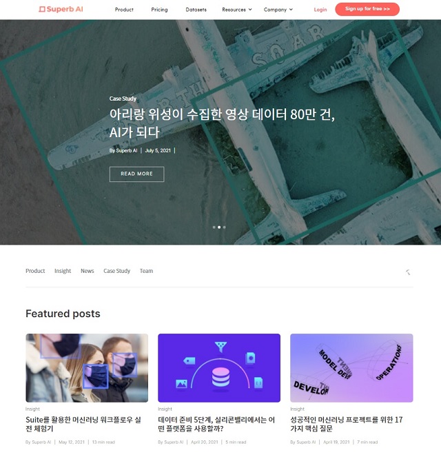 인공지능 기업 슈퍼브에이아이는 데이터 라벨링 노하우 및 특허 기술, ML옵스 등의 관련 콘텐츠를 볼 수 있는 기술 블로그를 운영하고 있다. 자사 핵심 기술을 공개하는 ‘Tech’, 인터뷰 및 활동 소식, 제품 업데이트 소식 등을 전하는 ‘News’, 파트너사 활용 사례를 소개하는 ‘Use Cases’, 기술 노하우를 정리한 ‘White paper’ 등의 카테고리로 구성되어 있으며, 김현수 대표를 비롯해 김계현 CRO와 임직원들이 직접 기획 및 작성한 다양한 인공지능 콘텐츠를 만나볼 수 있다.