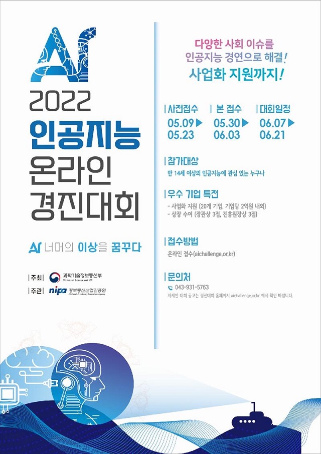과학기술정보통신부(장관 임혜숙, 이하 '과기정통부')가 온라인에서 인공지능 알고리즘 개발 능력을 겨루는 '2022년 인공지능 온라인 경진대회'를 개최한다.