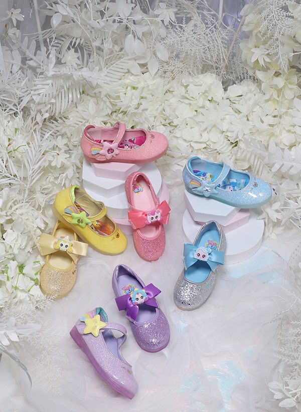 제품은 ▲양발 글리터 리본과 로열핑이 포인트인 ‘캐치! 티니핑 LED 리본 메리 제인’ ▲스트랩에 매치된 로열핑이 포인트인 ‘슈팅스타 캐치! 티니핑 LED 글리터 메리제인’으로 구성되어 있다. 또한 LED 구두로 걸을 때마다 라이팅 솔이 발을 빛나게 하며 신발 색상은 각 로열핑 별 심볼 컬러인 총 4가지로 발매된다.