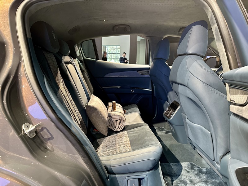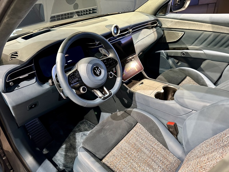 실내는 죠르제띠와의 협업을 기념하고 안락함을 강조하기 위해 데님 컬러의 가죽으로 꾸몄다. 시트는 죠르제띠 마세라티 인테리어 컬렉션에 사용된 죠르제띠 전용 울 혼방 4가닥 패브릭(데님, 화이트 멜란지, 블랙, 구리 색상)을 적용했다. 알칸타라 소재의 헤드레스트에 새겨진 트라이던트 로고는 브랜드 역사상 최초로 회청색 계열의 우드로 제작돼 특별함을 더했다.