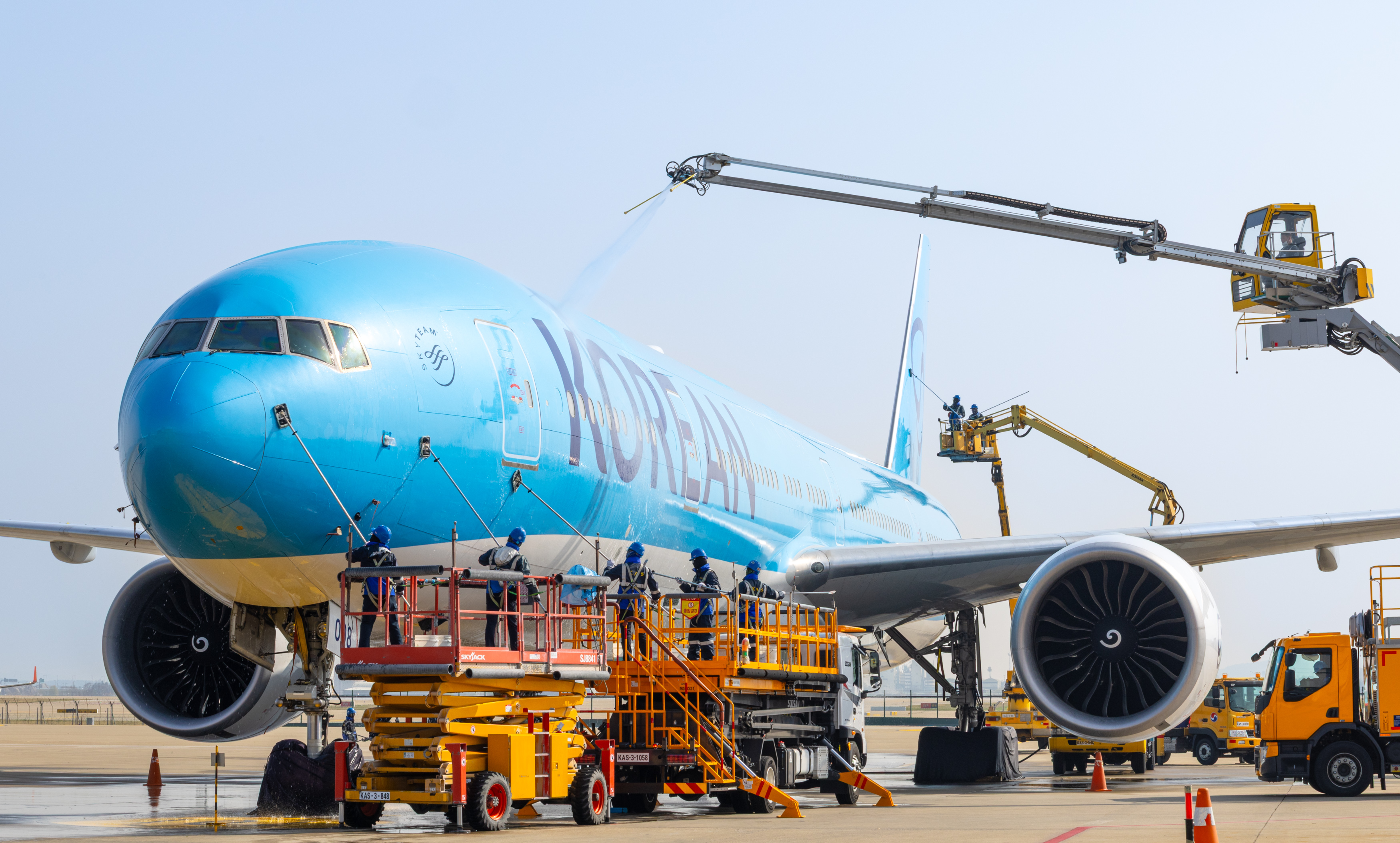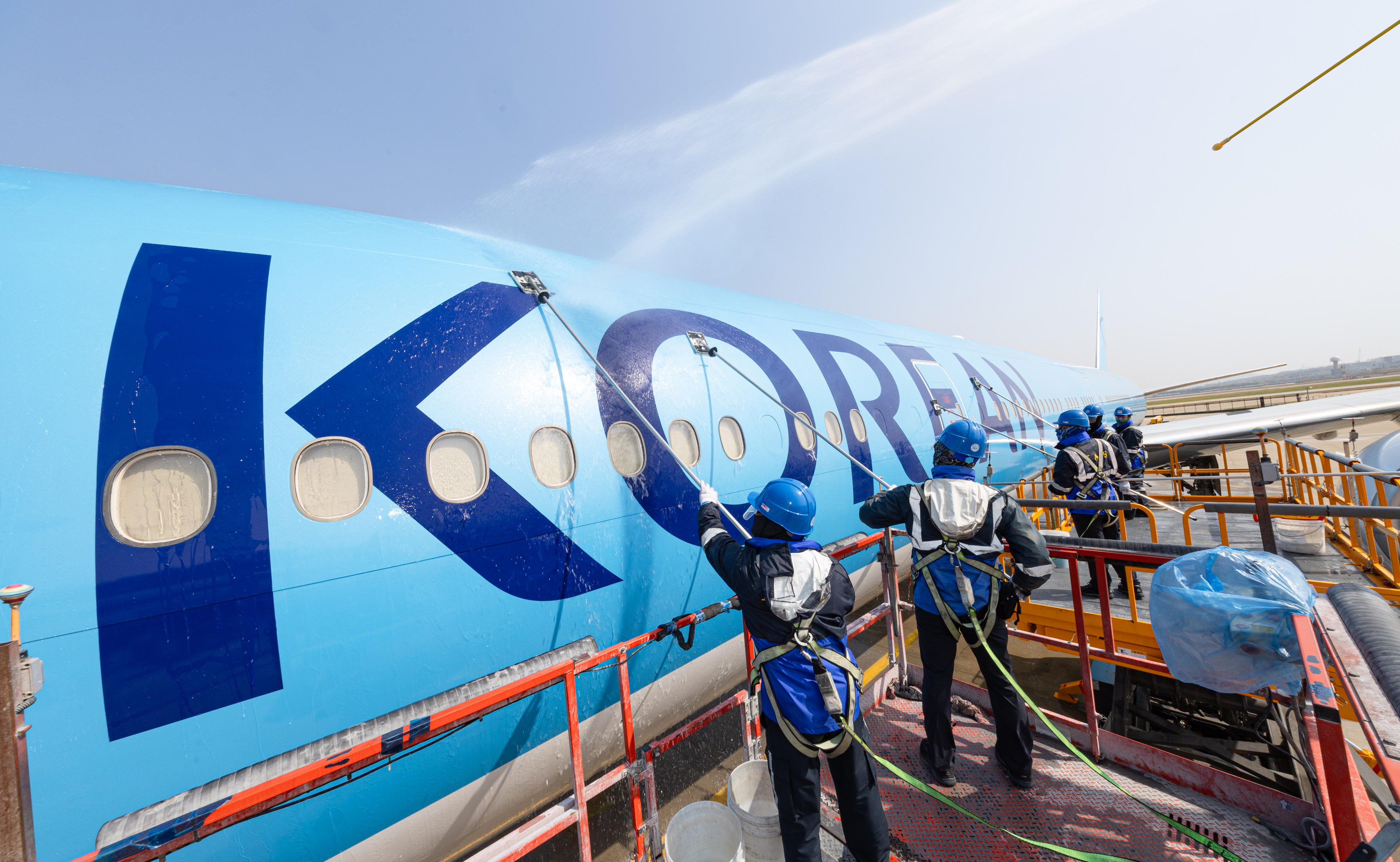 대한항공 관계자는 "승객들에게 쾌적한 서비스를 제공하고 안전하게 운항하기 위해 주기적으로 동체 세척을 진행하고 있다"며, "항공기 표면을 부식하고 페인트 도장을 흐리게 하는 황사 등 오염 물질을 닦아내고 항공기 외부 표면에 생긴 이물질 층을 제거함으로써 운항 효율을 높이는 데 기여한다"고 말했다.