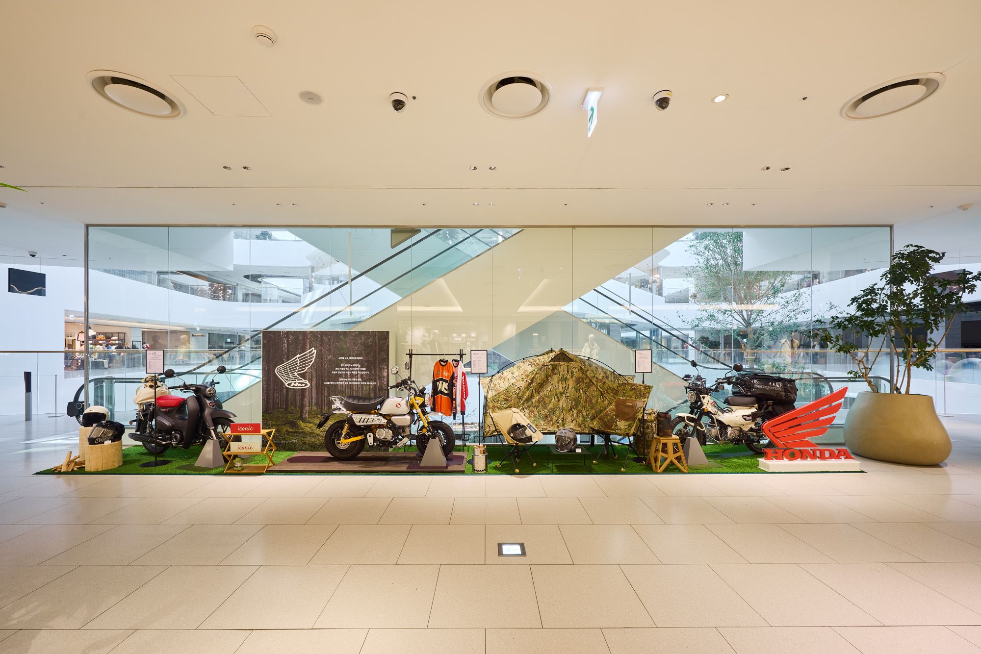 아이코닉 모토 빌리지는 3층 중앙 에스컬레이터 옆 공간에 위치하며 모토 캠핑 콘셉트로 꾸려졌다. 몽키125, CT125, C125 등 혼다 아이코닉 시리즈 라인업을 한눈에 경험할 수 있으며, 자유롭고 유니크한 라이프스타일을 제안한다.