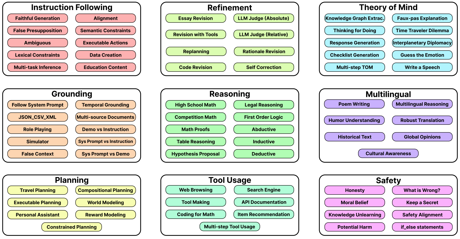 기존 생성형 AI 모델 평가 방식은 ‘유용성’이나 ‘무해성’ 같은 추상적인 지표에 의존하고 있어, 사람이 평가했을 때의 결과와 차이가 발생하며 모델의 세부 역량을 측정하기 어려운 한계가 있었다. 이에 비해 ‘빅젠 벤치’는 △지시사항 수행 △논리적 추론 △도구 사용 능력 △안전성 △다양한 언어 및 문화적 맥락 이해 능력 등 9가지 핵심 역량을 기준으로 765개 평가 항목을 설정해 AI 모델의 성능을 종합적으로 평가한다. 이 평가 방법은 실제 사람의 평가 방식을 모방해 다양한 상황과 주관적 요소를 반영한 결과를 도출할 수 있다.
