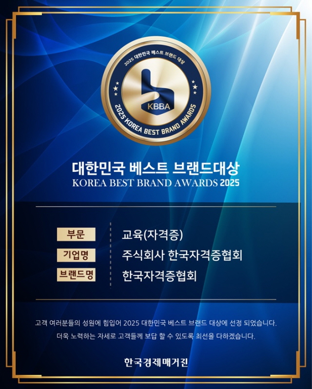 한국자격증협회가 대한민국 베스트브랜드대상 교육(자격증) 부문 1위를 수상했다.