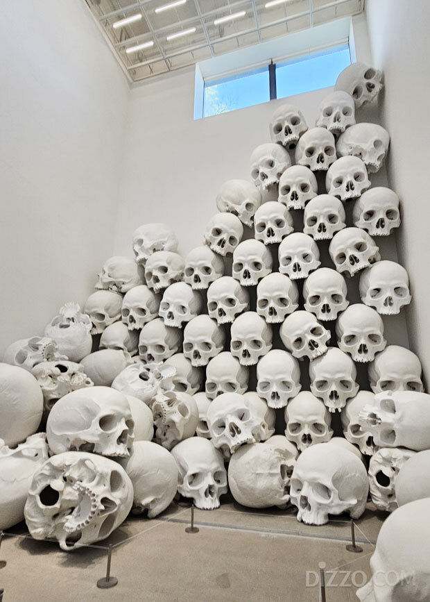 국립현대미술관 5전시실에는 14m에 달하는 천장 끝까지 두개골이 쌓여 있어 압도적인 시각적 경험을 선사한다. 각각의 두개골 조각은 미세한 균열과 얼룩까지 사실적으로 구현되어 있지만, 개별적 정체성은 지워지고 오직 집단의 존재감만이 공간을 가득 채운다. 죽음을 다루고 있지만, 무겁게 느껴지기보다는 죽음에 대해 차분히 바라보게 한다.