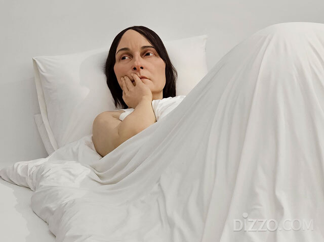 또 다른 대표작 ‘침대에서(In Bed, 2005)’는 6m가 넘는 거대한 여성이 침대에 반쯤 누워 어딘가를 응시하는 모습이다. 처음 마주했을 땐 크기에서 오는 위압감에 놀라지만, 사람 같은 생생한 모습에 시선을 빼앗기고 몰입하게 된다. 이 여성은 관람객을 보지 않는다. 마치 우리가 보이지 않는 존재인 것처럼, 시선을 다른 곳에 둔 채 고요히 생각에 잠겨 있다. 살아 있는 사람처럼 느껴지지만, 그렇기에 더 외롭고 쓸쓸하게 다가온다.