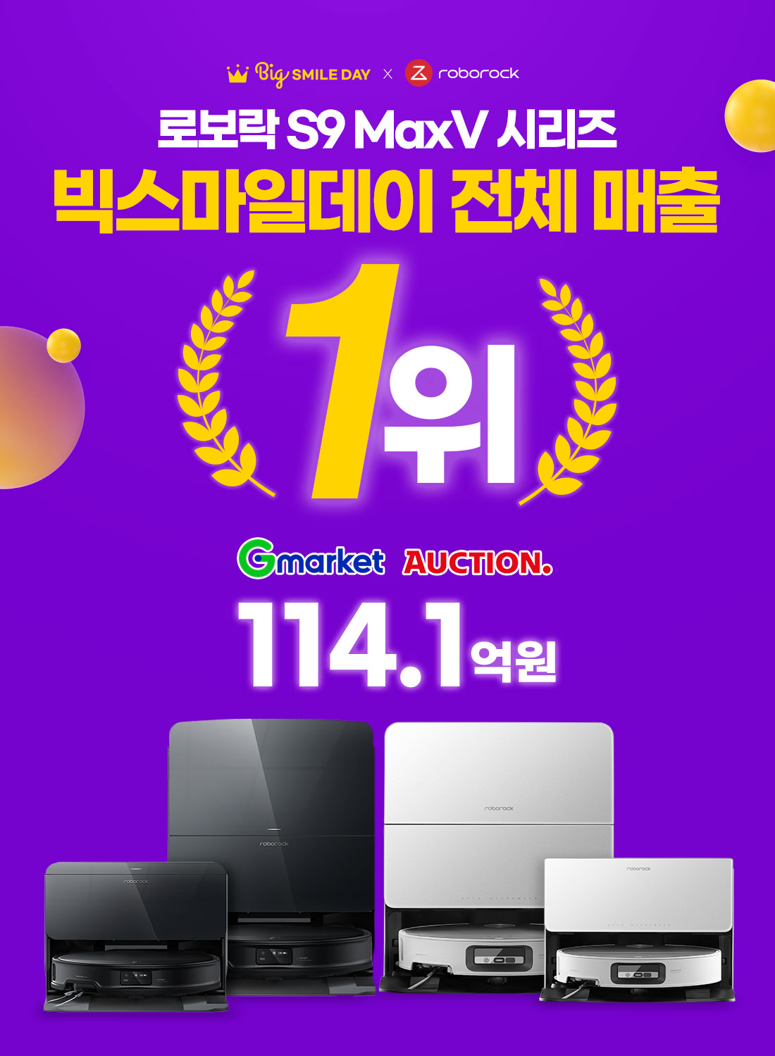 로보락 관계자는 "이번 빅스마일데이에서 S9 맥스V 시리즈가 거둔 성과는 로보락이 소비자의 기대와 신뢰에 지속적으로 부응해 온 결과"라며, "앞으로도 앞서가는 기술력을 바탕으로 국내 프리미엄 로봇청소기 시장을 선도할 것"이라고 말했다.
