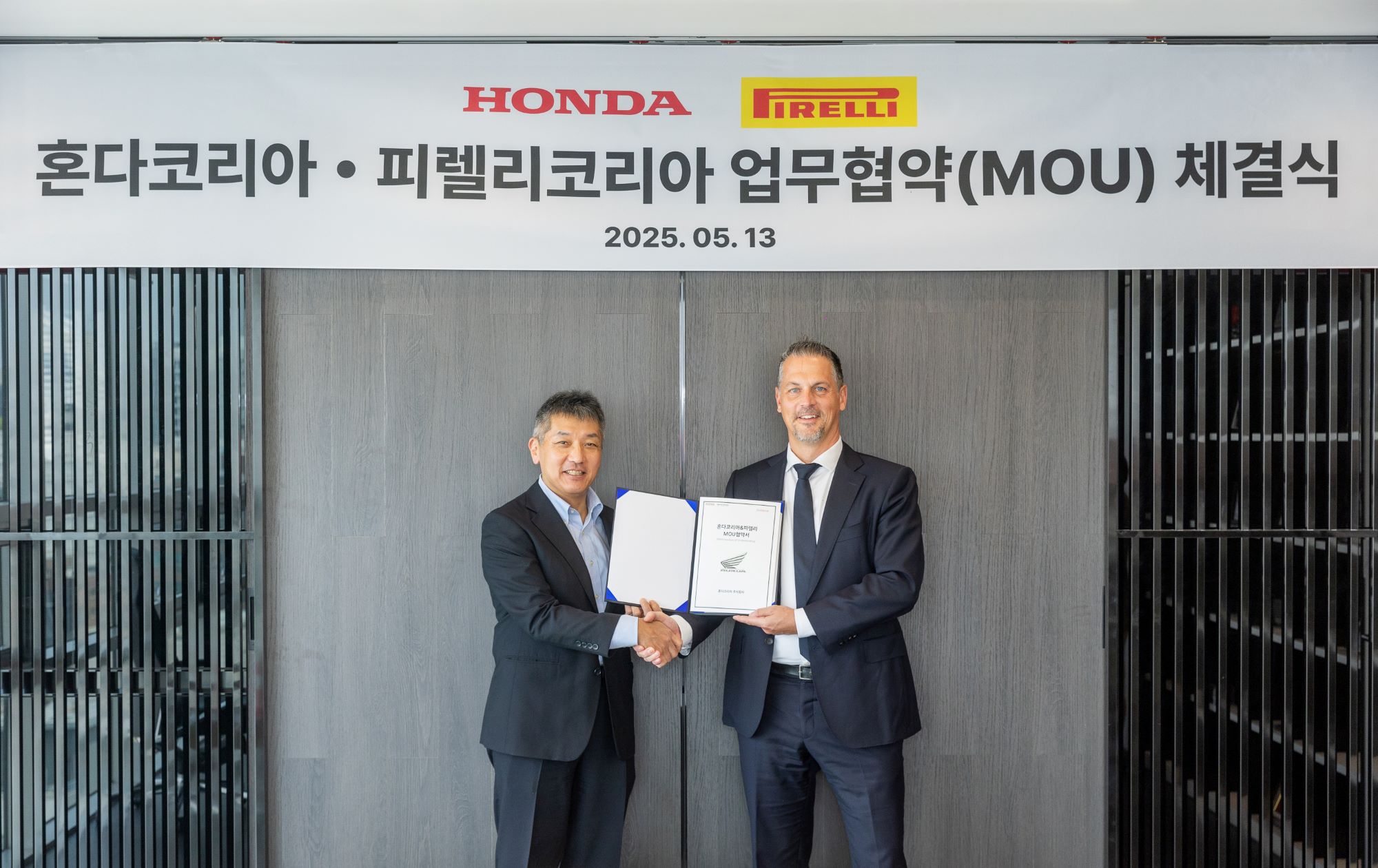 혼다코리아가 지난 13일 글로벌 프리미엄 타이어 브랜드 피렐리코리아와 모터사이클 전용 프리미엄 타이어 공급을 위한 전략적 업무협약(MOU)을 체결했다고 14일 밝혔다.