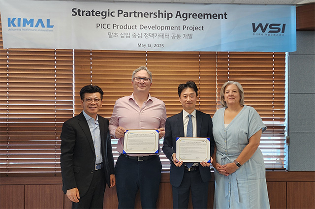 더블유에스아이가 영국 심혈관 전문기업 키말(Kimal)과 전략적 파트너십을 체결하고, 말초삽입중심정맥카테터(PICC) 제품의 공동 개발 및 아시아 시장 공급을 본격화한다고 19일 밝혔다.