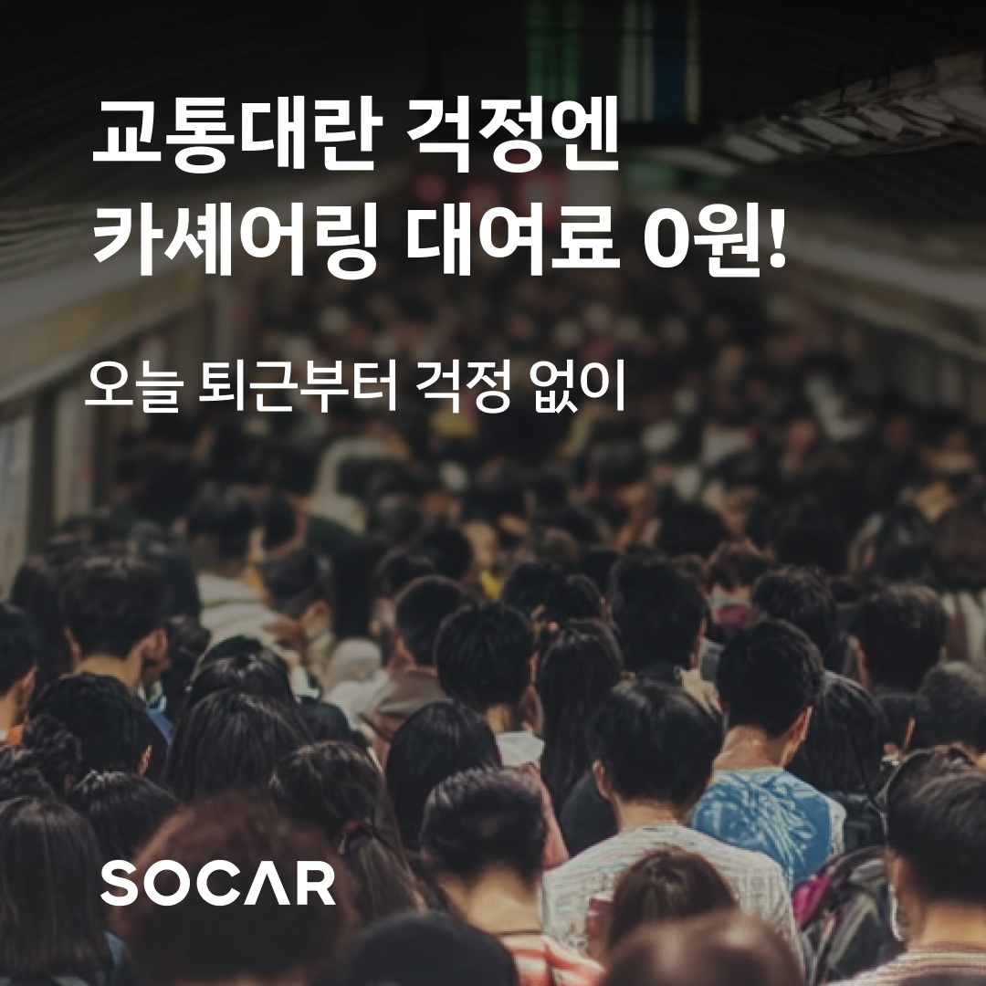 ㈜쏘카가 금일부터 대중교통 이용에 불편을 겪는 시민들을 위한 출퇴근 긴급 지원 할인 쿠폰을 제공한다고 27일 밝혔다.