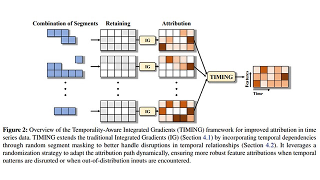연구 결과, 기존의 IG 기반 기법이 일부 최신 기법보다 오히려 높은 설명 성능을 보일 수 있음을 확인했고, 이를 기반으로 시계열 데이터에 맞춘 개량 방식인 ‘TIMING’을 새롭게 도출했다. TIMING은 구간 단위 무작위 마스킹을 활용해 시간적 의존성을 제거하고, 각 시점의 기여도를 더욱 정교하게 평가할 수 있도록 설계됐다.
