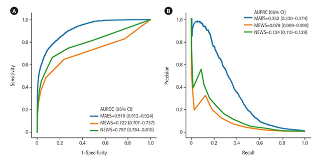 이번 연구는 계명대학교 동산병원 내분비대사내과 조호찬 교수팀과 공동으로 진행했다. 연구진은 일반 병동에 입원한 성인 환자 6,039건의 데이터를 분석해, 바이탈케어의 예측 성능을 기존의 NEWS(National Early Warning Score), MEWS(Modified Early Warning Score)와 비교 평가했다.