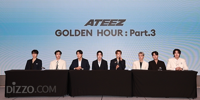 12일 서울 마포구 호텔나루 엠갤러리 나루볼룸에서는 미니 12집 'GOLDEN HOUR: Part.3'(골든아워: 파트 3)로 컴백하는 에이티즈(ATEEZ)의 기자간담회가 진행됐다. 지난해 11월 이후 약 7개월 만의 컴백이다. 산은 "오랜만에 새로운 모습으로 인사를 드릴 수 있게 되어 설렌다"라고 소감을 전했고, 종호는 "열심히 준비한 만큼 좋은 모습을 보여드리겠다"라는 각오를 다졌다. -