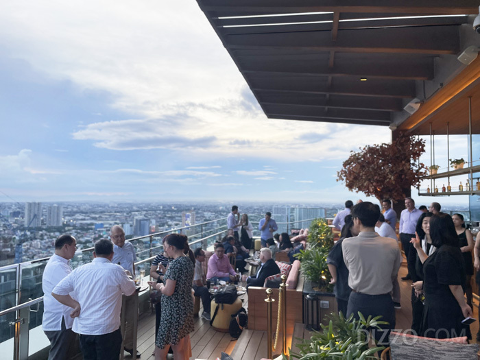 바의 인테리어는 모던하면서도 따뜻한 느낌으로 꾸며져 있으며, 야외 테라스와 실내 공간이 적절히 조화를 이루고 있다. 특히 일몰 시간대에는 하늘이 붉게 물들면서 도시 전체가 황금빛으로 변하는 장관을 감상할 수 있다.