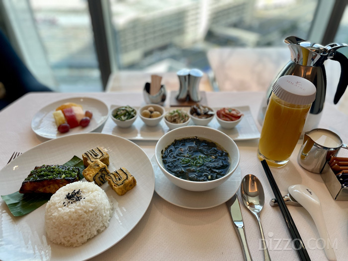 한식 인룸다이닝 서비스도 매우 인상적이었다. 소고기 미역국, 생선구이, 계란말이, 숙주나물, 김치, 메추리알 장조림, 호박나물, 버섯무침, 생망고주스, 커피, 모듬과일 등 정성스럽게 준비된 한식 조식 메뉴가 객실로 배달되어 편안한 아침 식사를 즐길 수 있었다.