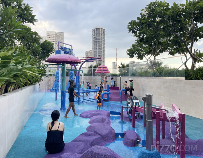키즈 워터파크는 성인용 수영장과 완전히 분리되어 있어 어른들은 여유로운 수영을 즐기는 동안 아이들은 전용 공간에서 신나게 놀 수 있는 구조다. 또한 워터파크 주변에는 그늘막이 설치되어 있어 부모들이 그늘에서 아이들을 지켜볼 수 있도록 배려했다. 수영장과 워터파크는 오전 7시부터 오후 9시까지 운영되며, 전문 라이프가드가 상주하여 안전사고를 예방한다. 수영장 옆에는 풀 카페(Pool Cafe)가 있어 물놀이를 즐기면서 간단한 스낵과 음료를 주문할 수 있다.
