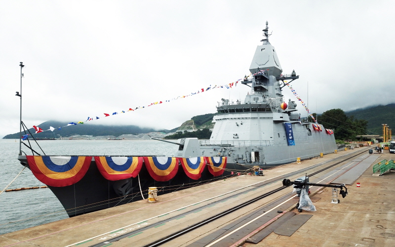 해군과 방위사업청(이하 방사청)이 20일 오전 경남 고성 SK오션플랜트에서 울산급 Batch-Ⅲ의 2번함인 ‘경북함(FFG-829)’ 진수식을 열었다.