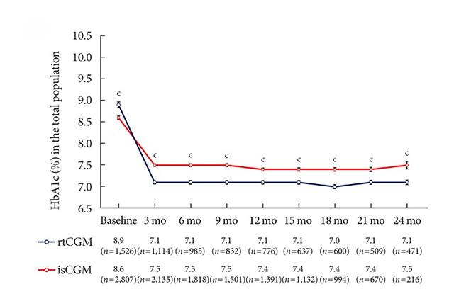 1형 당뇨병 환자에서 실시간 연속 혈당측정기가 간헐적 스캔형 혈당측정기보다 혈당 조절에 더 효과적이라는 국내 대규모 연구 결과가 나왔다.