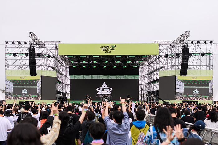 호텔 로비에서 내린 관객들이 데미안 허스트의 조형 작품을 지나 샹들리에 복도를 통과하자 짙푸른 잔디광장이 펼쳐졌다. 국내에서 유일하게 호텔 리조트에서 열리는 페스티벌 '아시안 팝 페스티벌 2025(아팝페)' 현장의 모습이다.