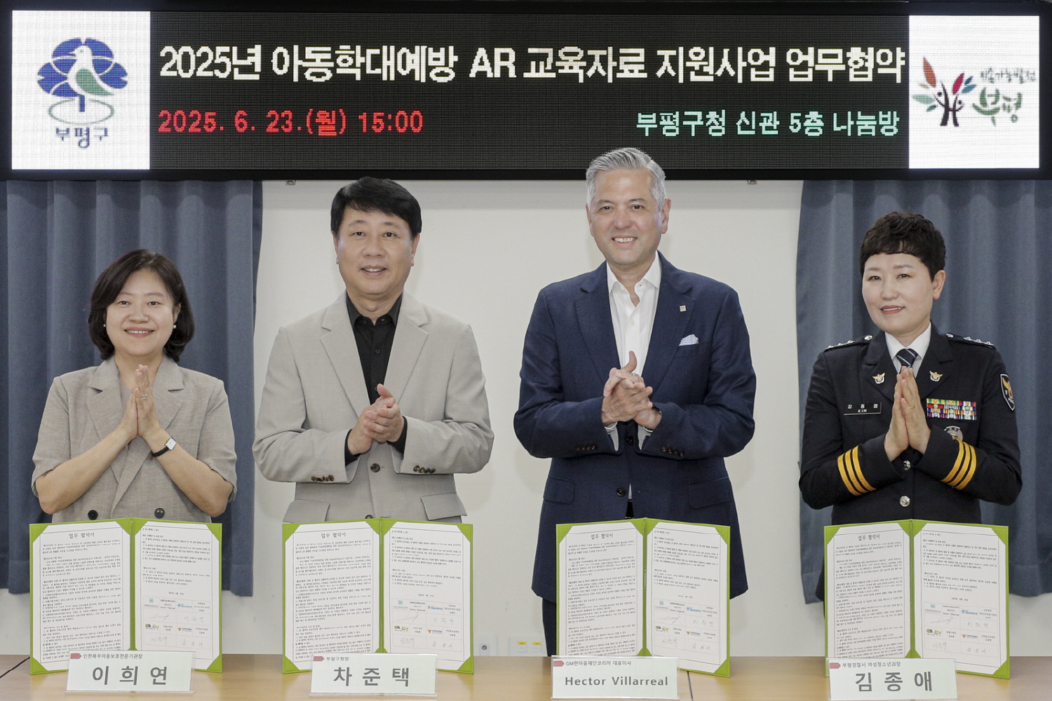 지엠한마음재단코리아(이하 지엠한마음재단)이 지난 23일 부평구청, 부평경찰서, 인천북부아동보호전문기관과 함께 '아동학대 예방을 위한 AR(증강 현실) 교육자료 지원 사업' 추진을 위한 다자간 업무협약(MOU)을 체결했다고 24일 밝혔다.