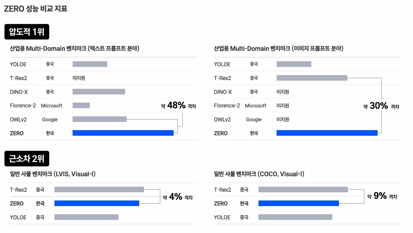 성능도 입증했다. 자체 구축한 37개 산업 분야 벤치마크에서 구글 OWLv2, 마이크로소프트 Florence-2 등 글로벌 빅테크 모델을 48% 차이로 앞섰다. 특히 A100 GPU 8장만 사용해 경쟁사 대비 10분의 1 자원으로 개발한 점도 주목할 부분이다.