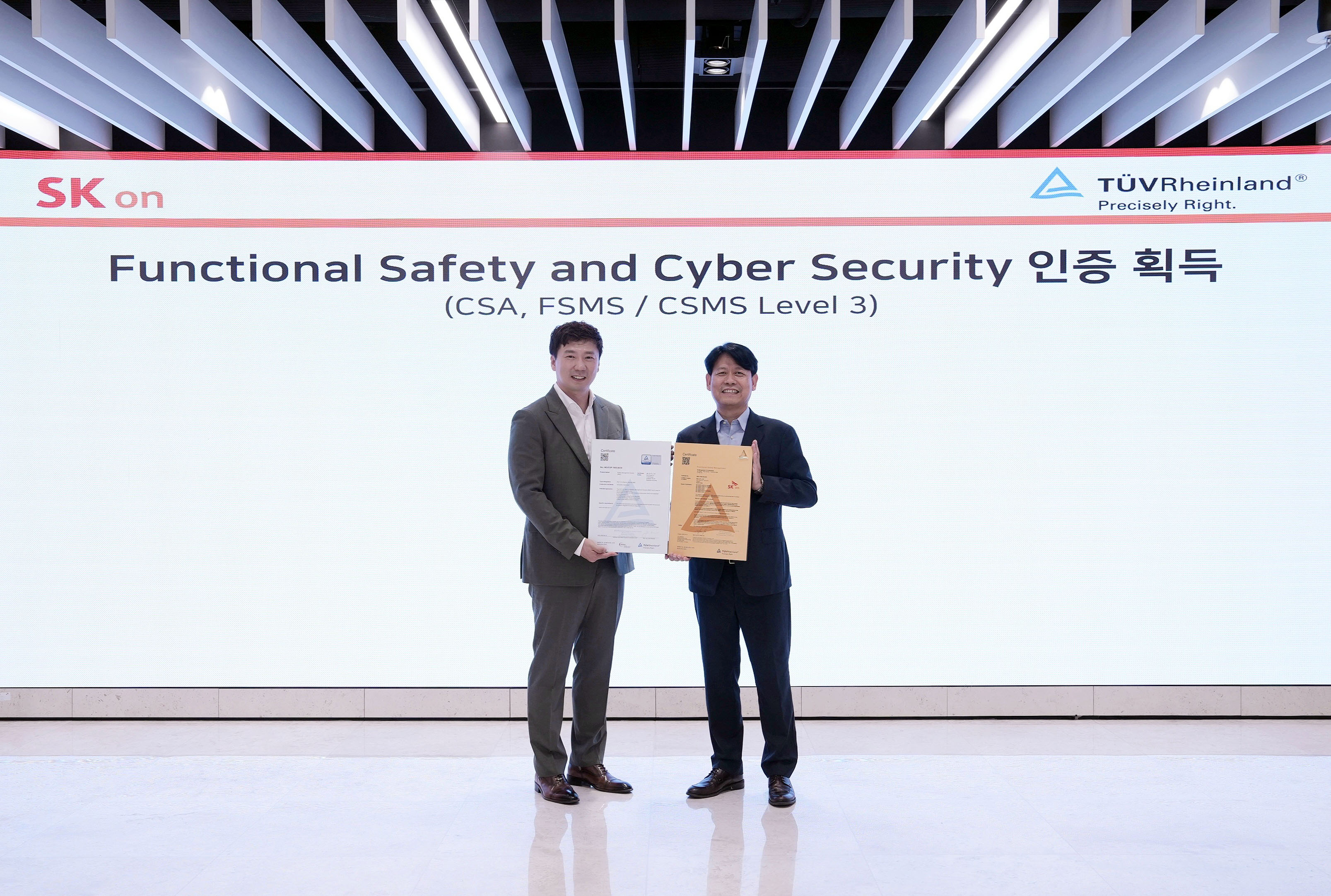 SK온은 글로벌 시험·인증 전문기관인 TUV 라인란드로부터 BMS에 대해 사이버보안 인증(CSA)과 기능안전 관리체계(FSMS) 레벨3 인증을 동시에 획득했다고 10일 밝혔다.