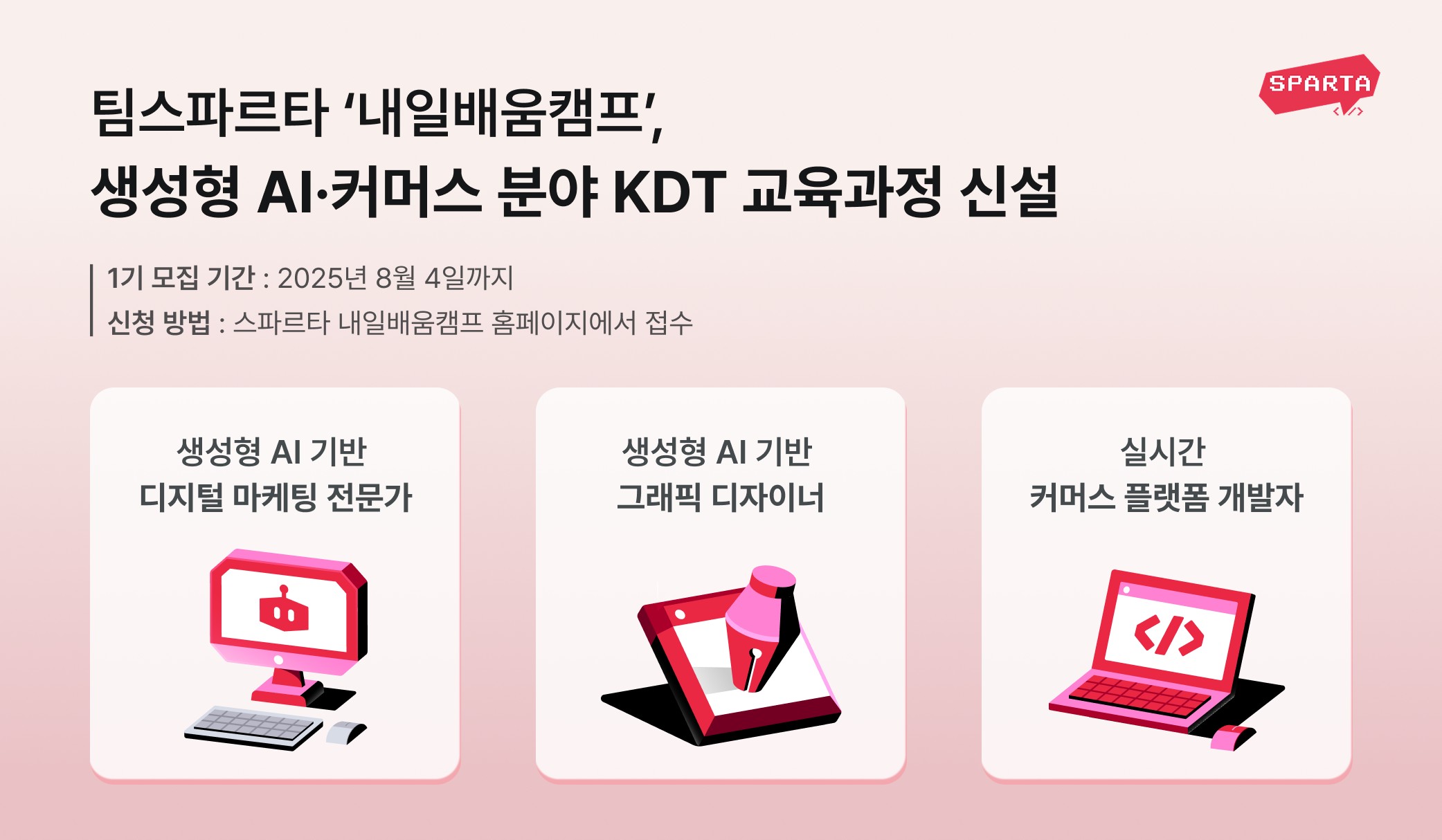 IT 스타트업 팀스파르타가 국비지원 교육인 K-디지털 트레이닝(KDT) ‘스파르타 내일배움캠프’에 교육과정 3종을 신설했다고 11일 밝혔다.