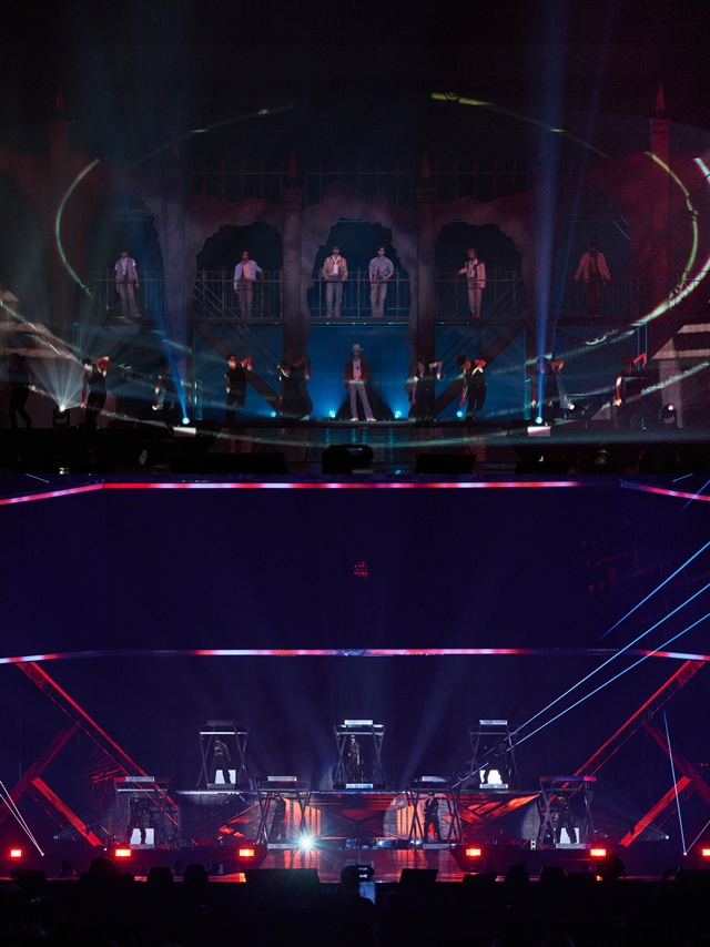 특히 가로 105m, 세로 18m에 달하는 초대형 LED 스크린과 'BOOM'에서의 리프트 스테이지를 비롯한 각 곡 콘셉트에 맞춘 무대 세트와 시시각각 변하는 레이저 조명 등 풍성한 연출이 어우러져 보는 재미를 한껏 높였다. -