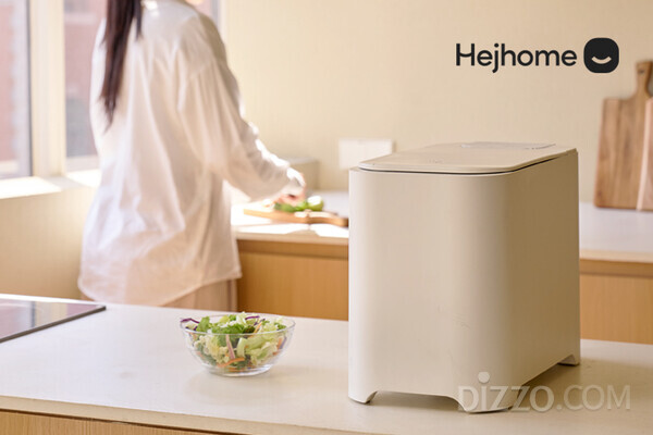 주식회사 고퀄의 IoT 브랜드 '헤이홈'이 론칭한 '스마트 AI 음식물처리기'는 내장된 AI 센서가 음식물의 무게, 온도, 습도를 분석해 음식물 처리를 진행한다. 전용 앱을 통해 처리 시작부터 정지, 진행 상태 확인, 자동 처리 예약 등 원격 제어가 가능하다. -