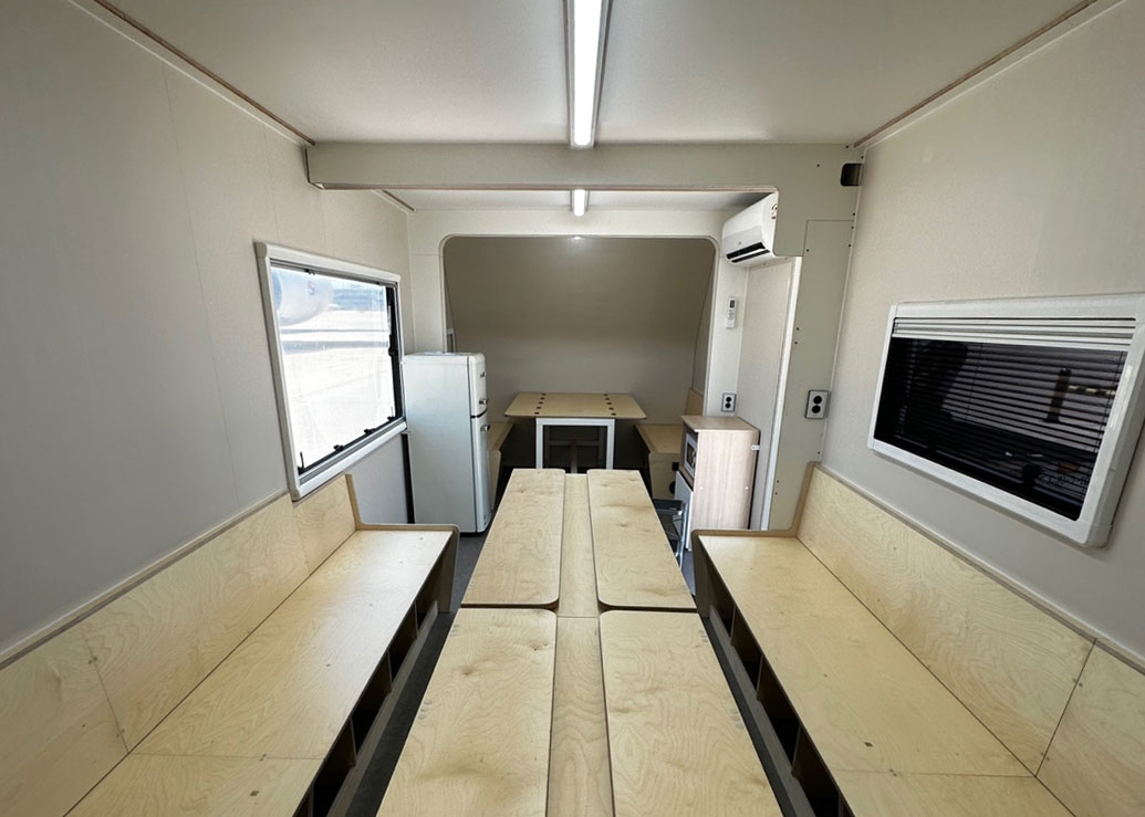 태양광 패널 장착을 통한 자립형 전력 공급 등 에너지 효율성까지 고려한 카라반 내부에는 에어컨부터 냉장고, 테이블, 전자레인지 등 휴식에 필요한 기본 시설이 마련됐고, 기초 서류 작업 등도 가능하도록 했다.