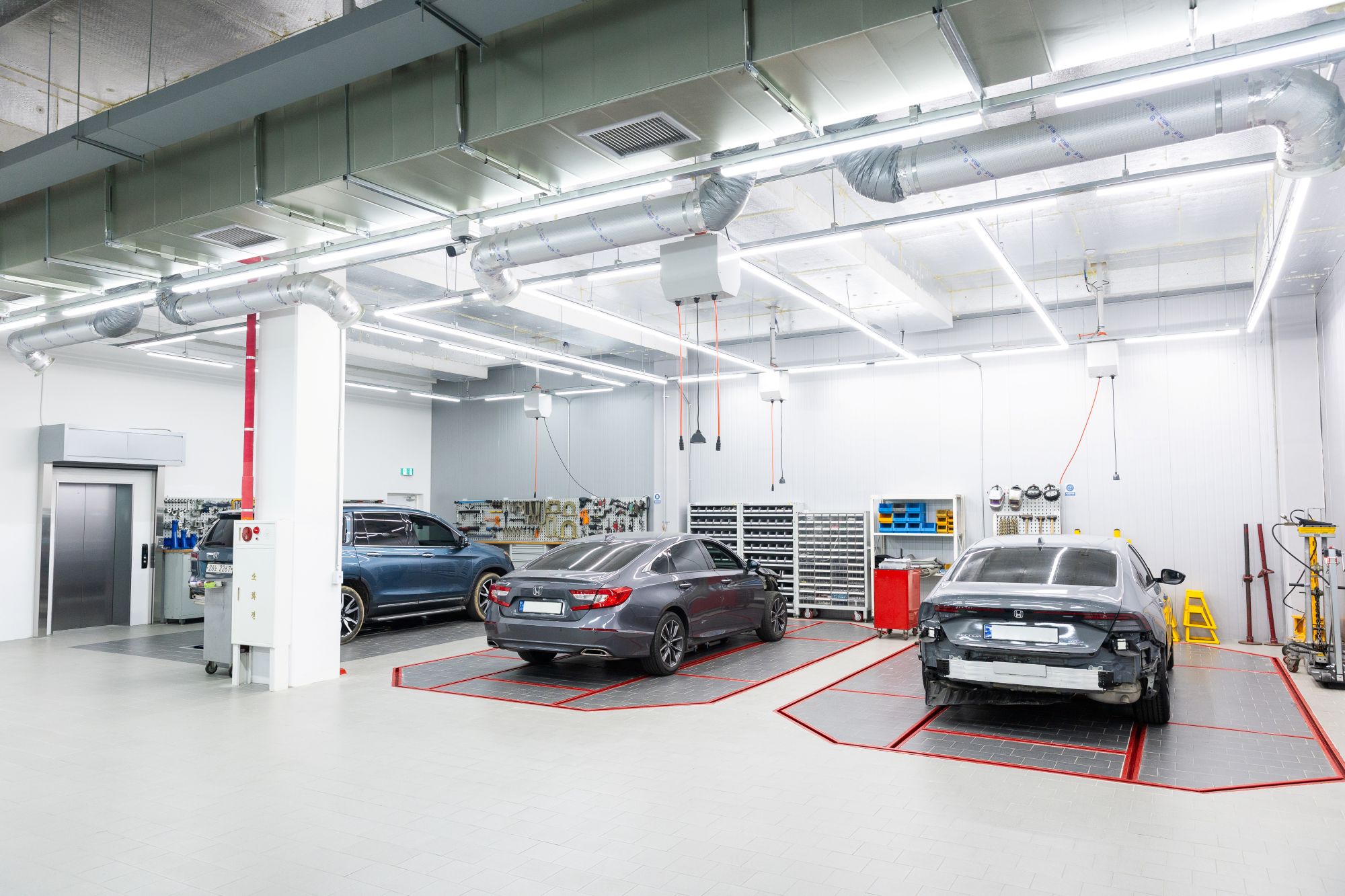 규모는 총면적 약 3194㎡(978평)로, 지하 1층부터 지상 4층까지 총 5층으로 구성됐다. 지하 1층 서비스센터, 1층 고객 접수처, 2층 고객 라운지, 3층 판금 및 도장 워크샵, 4층 옥상 주차장 등 최신식 시설을 갖췄다. 특히 10대의 워크베이를 도입해 중정비 서비스를 제공하고, 하루 최대 50대 수준의 동시 정비가 가능하다.