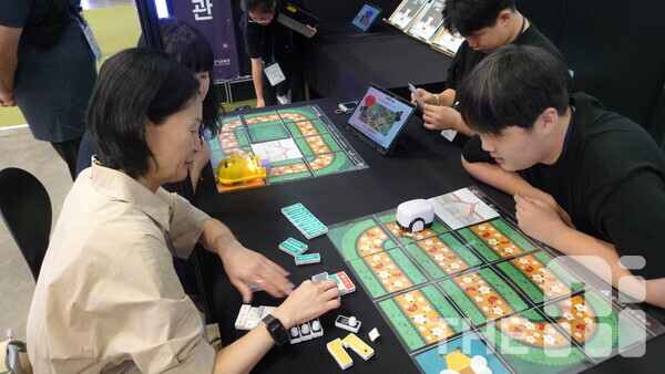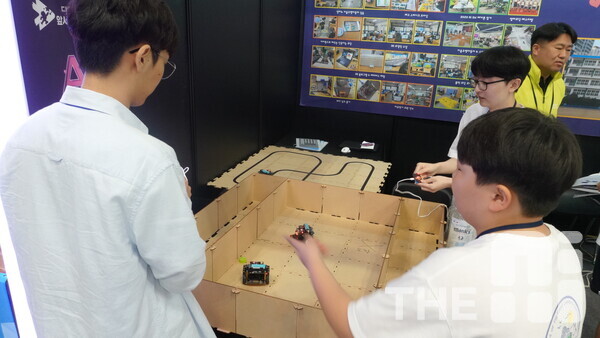 특히 눈길을 끈 건 발달장애 학생들을 위한 코딩 교육 로봇이다. 쉽게 조작할 수 있는 블록을 조립하면 자동차가 움직이는 방식이다. 이 코딩 교육 자료는 일반 참관객들에게도 인기였다. 전준화 부산해마루학교 교사는 “발달 장애 학생들도 눈으로 보고 만지고, 조작하면서 AI 개념을 자연스럽게 익힐 수 있도록 개발된 교구를 가지고 쉽게 코딩을 가르치고 있다”며 “컴퓨터 없이도 가능한 실물 기반 코딩으로 접근성을 높이고 있다”고 말했다.
