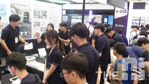 15일 부산 벡스코 제1전시장 ‘K-ICT WEEK in BUSAN 2025’에 마련된 ‘AI 교육관’에는 학생들이 직접 개발한 AI 작품들이 전시돼 관람객들의 발길을 붙잡았다. 입구에 들어서자 AI 기술을 체험하는 학생들과 이를 설명하는 또래 학생들이 얽혀 북적였다.