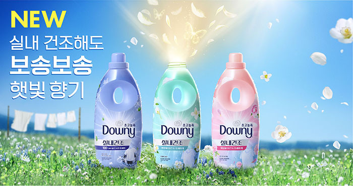 한국P&G 다우니는 최근 자사 베스트셀러인 '다우니 실내건조 섬유유연제'를 업그레이드해 출시했다. '햇빛건조 프레시 효과' 기술이 자사 제품 최초로 적용돼 실내 건조 시 발생할 수 있는 꿉꿉한 냄새의 원인 성분을 효과적으로 제거해 습한 실내에서도 햇볕에 말린 듯한 보송보송 햇빛향기를 선사한다. '프레시 클린', '플로럴 프레시', '민트&시트러스' 등 3종으로 구성해 선택의 폭을 넓혔다.