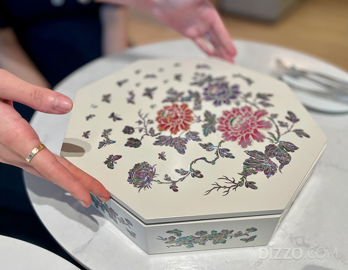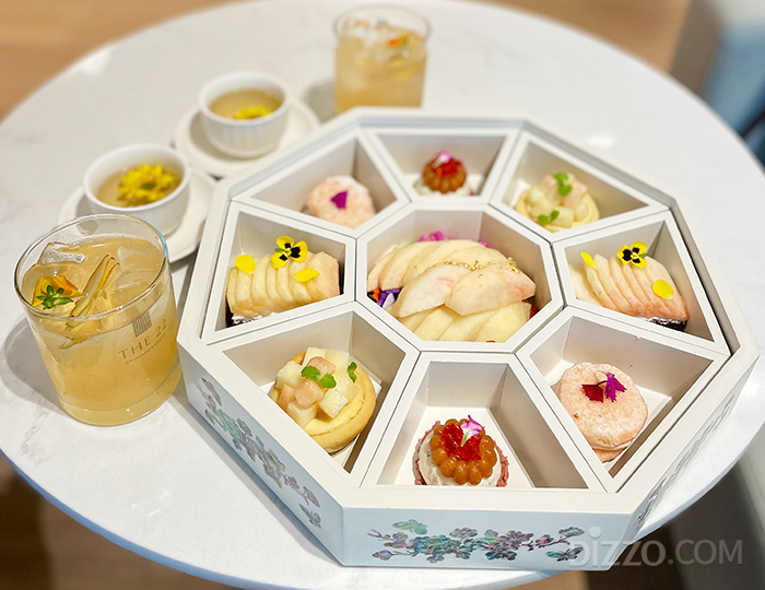 유자 치즈 타틀렛은 상큼한 유자 향과 진한 크림치즈의 조화가 입안을 깔끔하게 마무리해준다. 구절판 중앙에는 신선한 제철 백도복숭아가 정성스럽게 담겨 있어 자연 그대로의 복숭아 맛을 함께 즐길 수 있다.