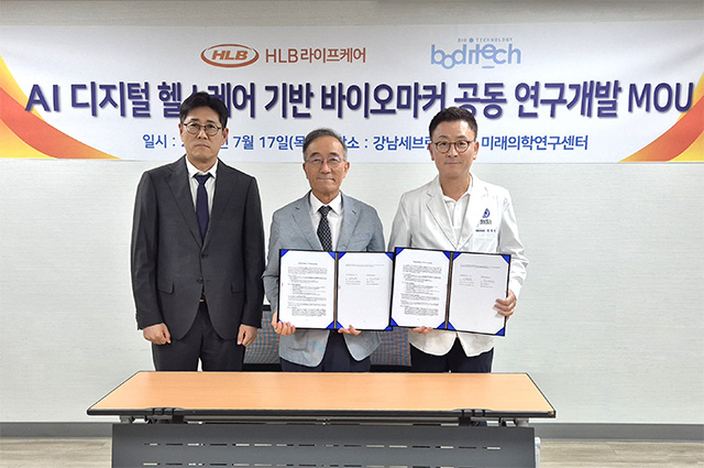 바디텍메드는 HLB라이프케어와 ‘AI 기반 맞춤형 만성질환 진단 바이오마커 공동 개발’을 위한 전략적 업무협약(MOU)을 체결했다고 18일 밝혔다. 이번 협약을 통해 양사는 ▲당뇨병 등 만성질환 관련 바이오마커 후보 물질 발굴 ▲AI 기반 예측 알고리즘 개발 ▲바디텍메드의 아피아스(APIOS), 아이크로마(i-chroma) 플랫폼을 활용한 현장형 진단 지원 기술 공동 개발 ▲임상 검증 및 인허가 절차를 포함한 상용화 프로세스 전반을 함께 추진할 계획이다.