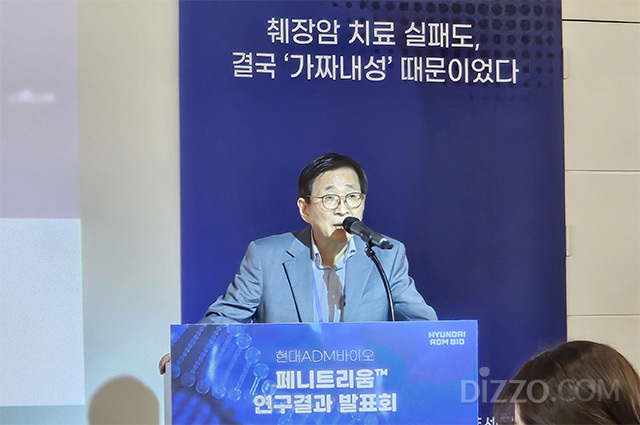 현대ADM바이오(이하 현대ADM)가 21일 서울 중구 정동1928아트센터에서 연구결과 발표회를 열고, 항암 신약 후보 물질 ‘페니트리움(Penetrium)’의 비임상 성과를 공개했다.