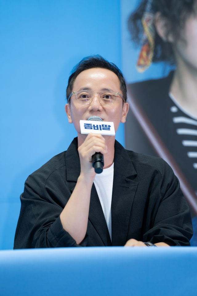 '좀비딸'은 이 세상 마지막 남은 좀비가 된 딸을 지키기 위해 극비 훈련에 돌입한 딸바보 아빠의 코믹 드라마다. 작품은 동명 인기 웹툰을 원작으로 했다. 영화 시나리오를 직접 쓴 필감성 감독은 "원작이 단행본만 7권이나 되는 분량이다 보니까 선택과 집중이 필요했다"라며 "뒷부분은 저희가 집중력을 끌어 올리기 위해서 인물들을 간소화하는 과정이 있었다. 인물들의 방향성에 의해 자연스럽게 정리된 것으로 이해해주시면 좋겠다"라고 포인트를 짚었다.