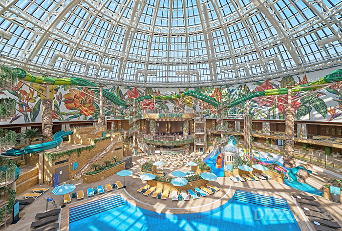스플래시 베이는 날씨에 구애받지 않고 사계절 내내 트로피컬 감성을 즐길 수 있는 유리 돔 형태의 실내 워터파크다. 낮에는 신나는 물놀이 공간으로, 밤에는 화려한 조명 아래 판타지 가득한 이색적인 분위기를 연출한다.