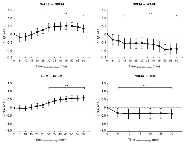 연구팀은 건강한 성인 41명을 대상으로 해당 장비를 사용해 수면 중 관찰을 진행한 결과, 비렘수면(NREM)으로 진입하면서 전두엽 뇌 수분량이 유의하게 증가하는 패턴을 확인했다. 특히 수면 초반의 첫 번째 깊은 수면 단계에서 수분량 증가 폭이 가장 컸으며, 이는 동물실험에서 보고된 아교임파계의 활성 패턴과도 유사한 양상이었다.