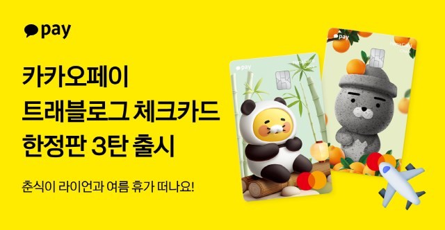 카카오페이가 여름 휴가 시즌을 맞아 ‘카카오페이 트래블로그 체크카드’ 한정판 3탄을 공개했다.
