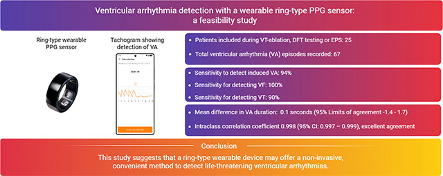 네덜란드 암스테르담 UMC 심장센터 연구진은 스카이랩스의 반지형 웨어러블 기기 CART-Ⅰ을 활용해, 병원 환경에서 유도된 심실 부정맥 상황에서 혈류 정지를 감지할 수 있는지 평가했다.